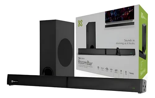 - Contenido del empaque: Barra de sonido, parlante de bajos, adaptador de corriente, manual del usuario, control remoto, 2 baterías AAA, cable RCA/3.5 mm, cable de conexión de la barra de sonido, cable óptico, 2 tornillos y 2 anclajes.