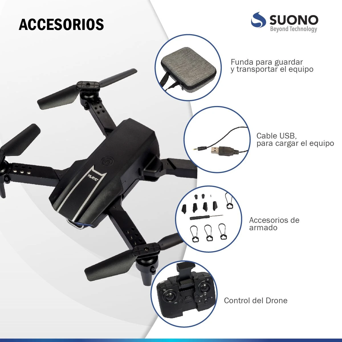 Función de fijación de altura, avión plegable, seis pasos con giroscopio; Despegue de una tecla, aterrizaje de una tecla, ascenso y descenso, adelante y atrás, vuelo de lado izquierdo y derecho, modo de Dirección, modo sin cabeza (con la cámara puedes añadir funciones: Foto de gestos, vídeo, modo sin cabeza, parada de emergencia, vuelo de trayectoria, sensor de gravedad, Música, zoom de 50x, cámara automática)